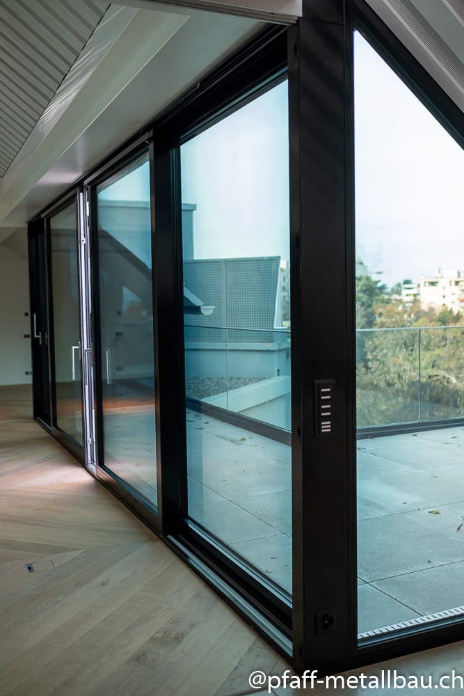 2021 Penthouse über den Dächer von Basel Penthouse über den Dächer von Basel 2020/2021 Elektrisches – Schiebedach, Rundes Glasfenster, Glasfronten, Geländer., diverse Metallbauarbeiten inne und Aussen.